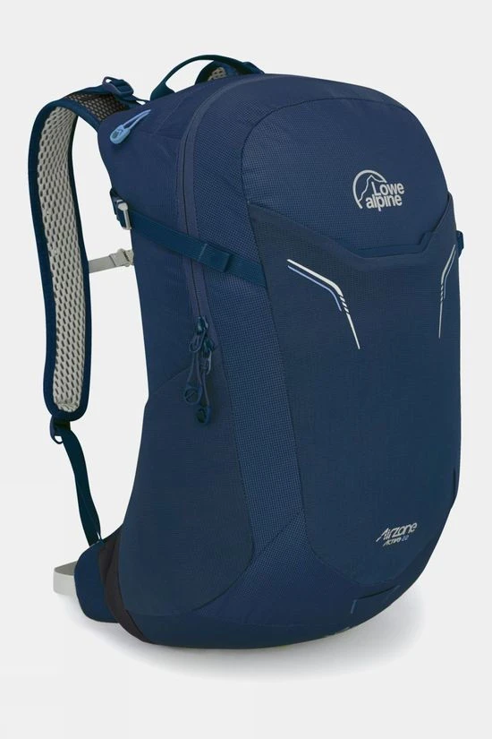 The Lowe Alpine AirZone Active 22 is built for cool, dry comfort on fast-paced hiking trips. The suspended mesh back panel of the new AirZone LT carry system creates a reliable ventilation space between back and pack for the rapid dispersal of moisture at traditional high-sweat zones.
