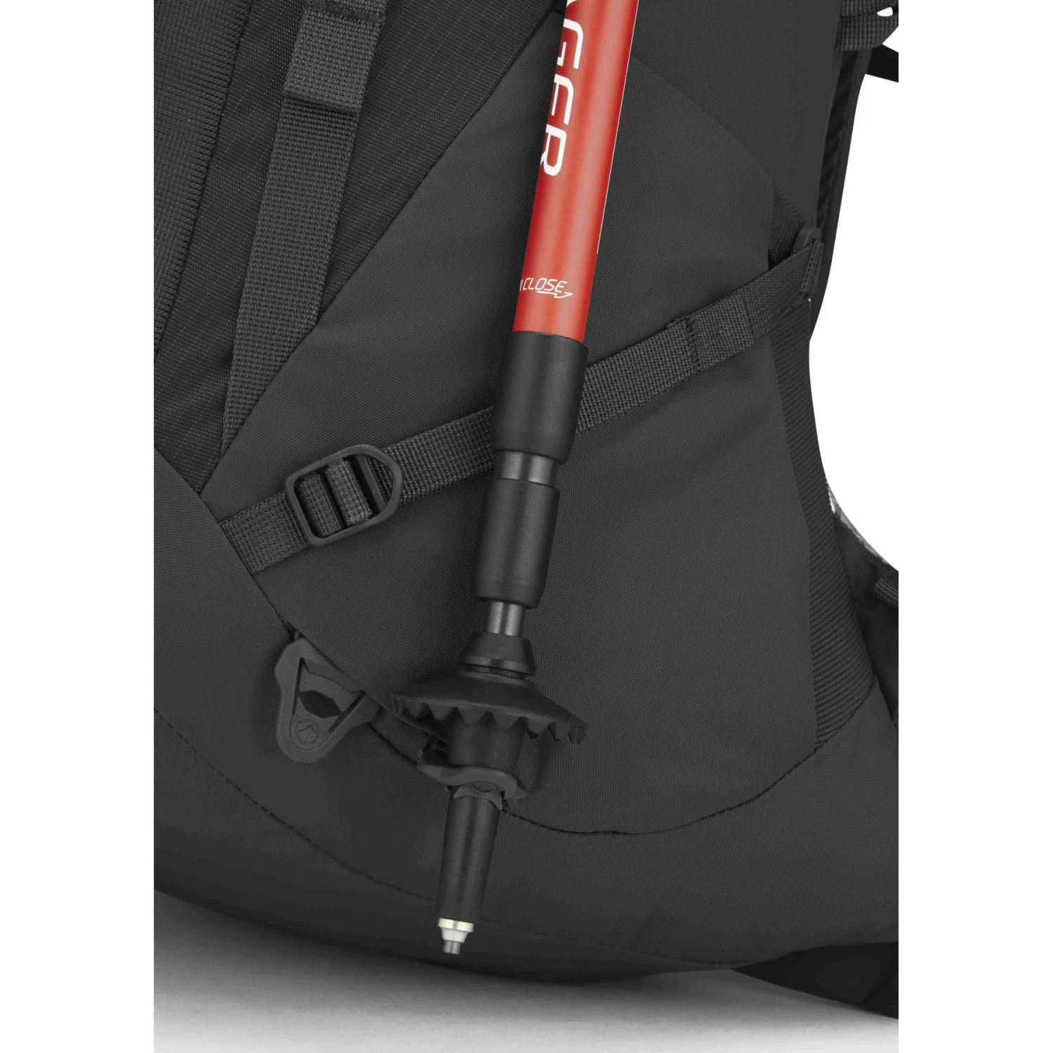 - Webloop compression strap for secure attachment of poles and axes