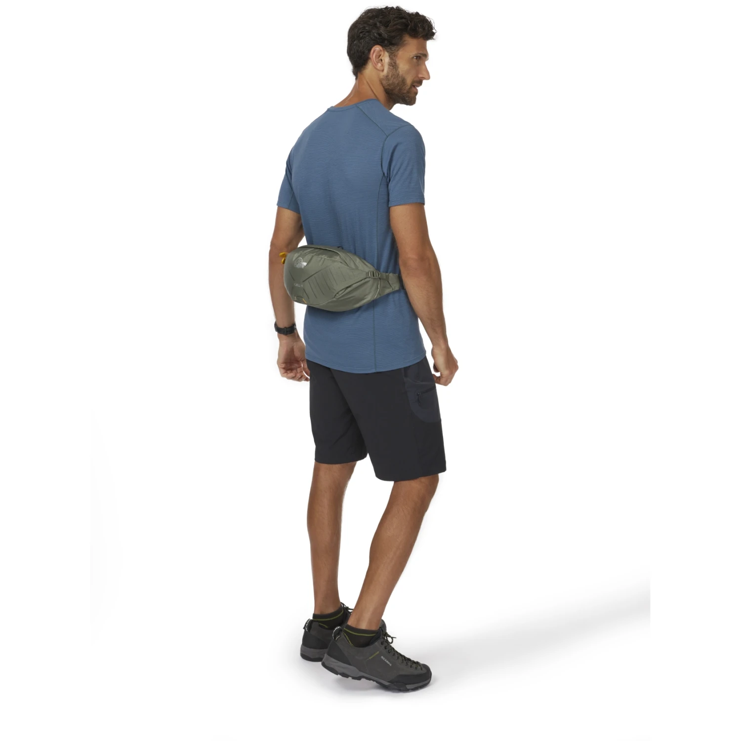 All those who like to travel lighter will appreciate having everything they need within easy reach on short hikes or cycling adventures. It is lightweight and compact, but has a capacity of 4 liters despite its slim profile and curved shape. The highly ventilated Air Contour™ lumbar pad fits snugly and is surrounded by open mesh, providing ample air circulation while reducing sweat buildup to keep you cool and dry. With the large two-way zipper, accessing your gear is a breeze. You can stash your valuables in the convenient interior zippered pocket, and attach an LED light to the loop on the outside. The Fjell 4 fanny pack is impregnated with a 100% fluorocarbon-free DWR coating, is breathable, and is great for carrying lightweight items while traveling or on mini-adventures.