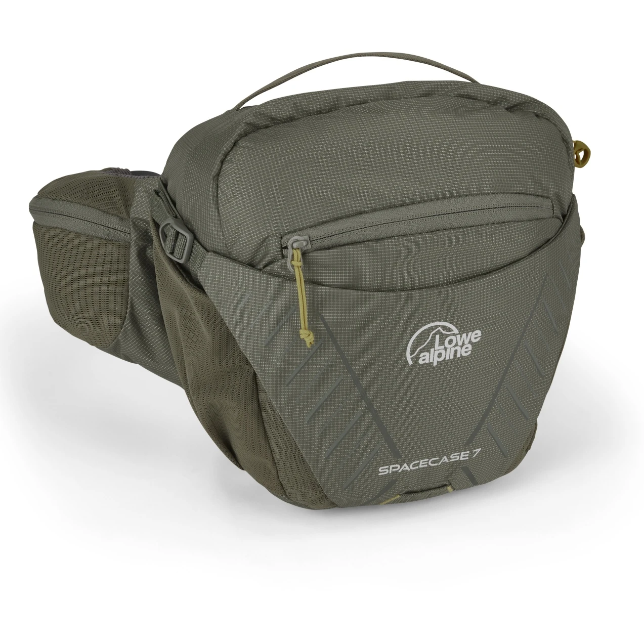The Space Case 7 belt bag is perfect for hikes and trips where you want to travel light. The lightweight Air Contour™ lumbar pad promotes air circulation to keep you cool and dry on long days on the trail. The bag has a curved shape so it fits comfortably against your body, and the integrated compression shield stabilizes weight and minimizes bounce on uneven terrain. The Space Case 7 fanny pack is impregnated with fluorocarbon-free DWR coating